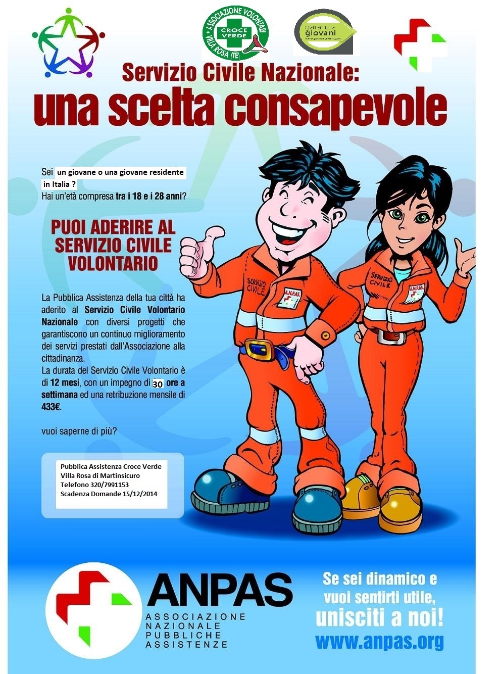 Alla P.A. Croce Verde di Villa Rosa è stato finanziato un progetto per il servizio civile nazionale con il fondo garanzia giovani.